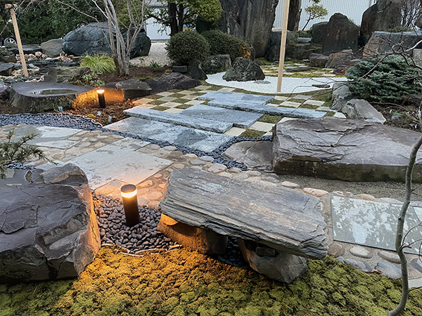 ![]() ▲芝石のアプローチと優しいフットライトが庭をドラマチックに ![]() ▲スナゴケと石のベンチ ![]() ▲自然石の隙間から宿根草が顔を出すクレバス植栽 |
