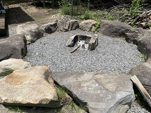 | 石囲いの炉と枕木デッキ(須坂市) |