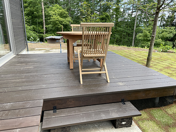 | 家族の集うウッドデッキと苔と石の小径(長野市) |