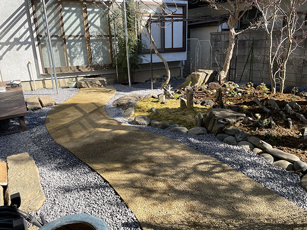 ![]() ▲フラットで歩きやすい通路へリニューアル ![]() ▲イタリア切り石との相性も良い ![]() ▲既存の切り石等も再利用して通路のアクセントに |
