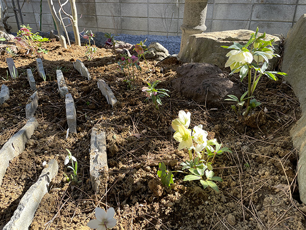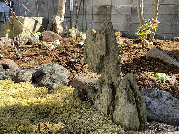 ![]() ▲茶室への導線を透水性舗装の小径にして歩きやすく ![]() ▲先代が集めた石も庭の一部に ![]() ▲松の下のクリスマスローズ |